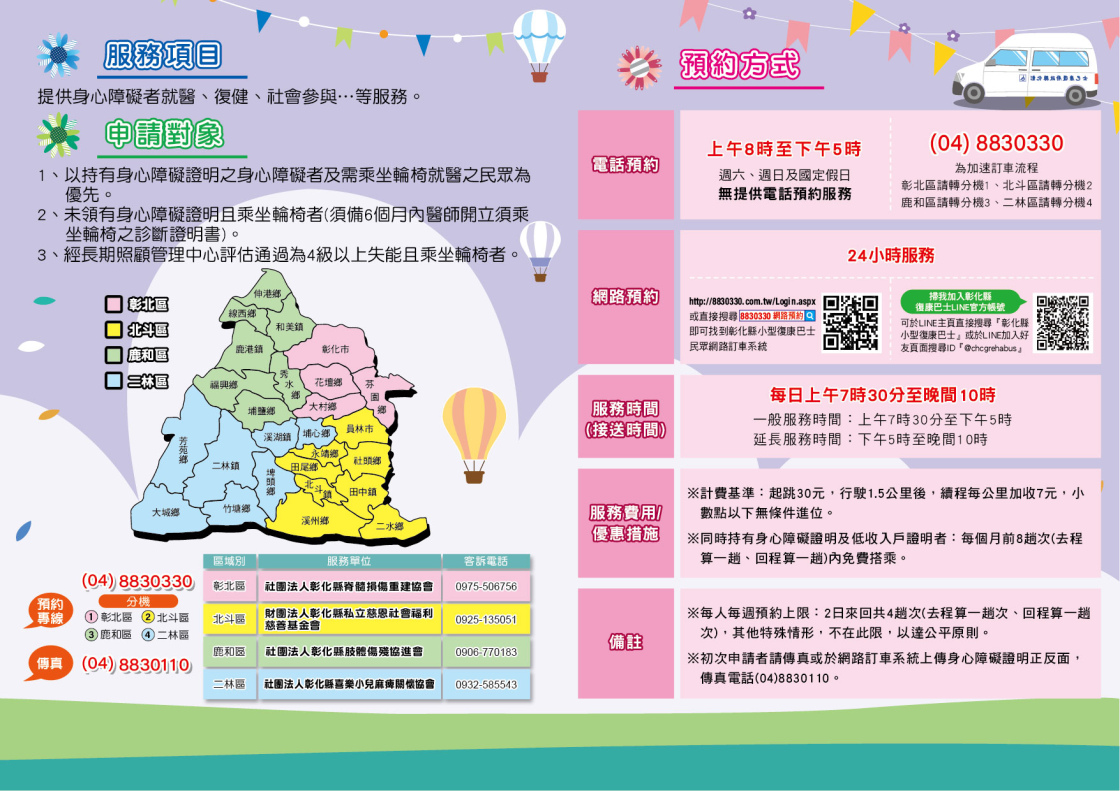 1、領有身心障礙證明(手冊)者及乘坐輪椅需就醫之民眾為優先。